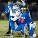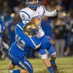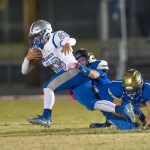 Trailing 28-7 in the final seconds of the first half, the Lancers faced fourth and goal from Reed’s 4. Quarterback Zach Ball was stuffed. It was the second time in the quarter McQueen failed to score from inside Reed’s 10.