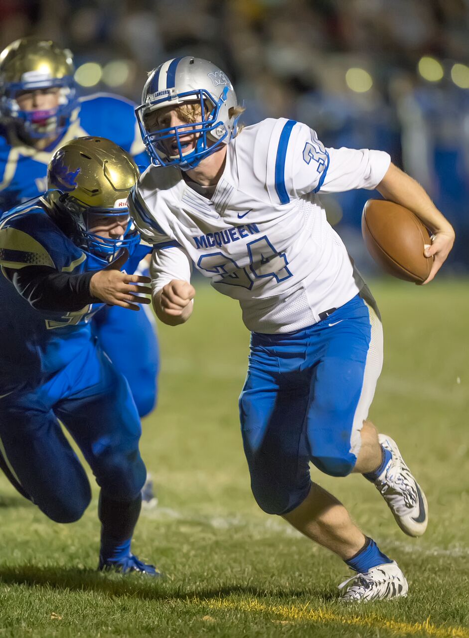 Trailing 28-7 in the final seconds of the first half, the Lancers faced fourth and goal from Reed’s 4. Quarterback Zach Ball was stuffed. It was the second time in the quarter McQueen failed to score from inside Reed’s 10.