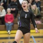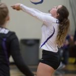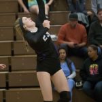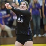 Ireland Bennett finished with a game-high 10 kills in the win. Jordyn Boswell had nine. Mackenzie O’Connell served eight aces to go along with 27 assists, five digs and a kill.