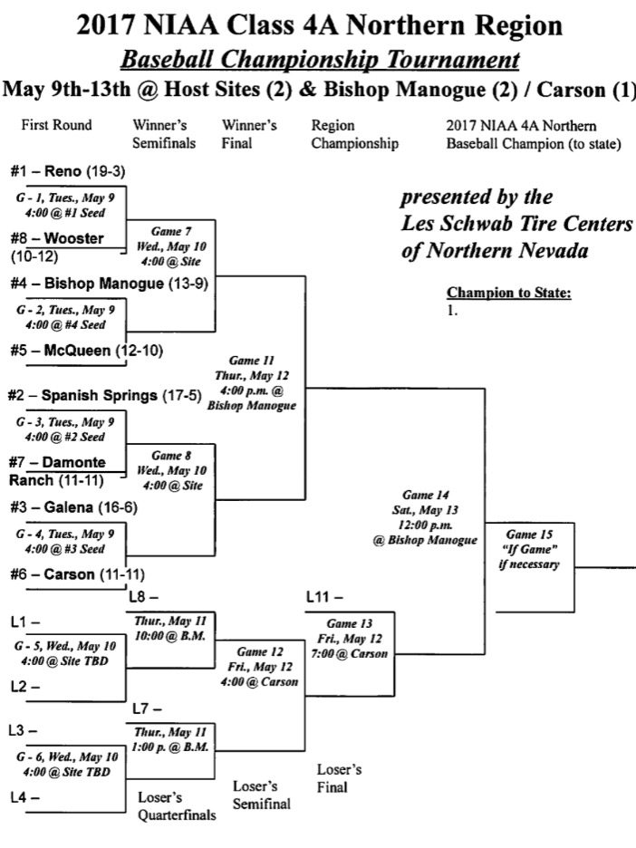 To avoid the loser’s bracket early, Spanish Springs will have to deal with Damonte Ranch. The Cougars took both games off the Mustangs this season, but neither was convincing. In their first meeting, exactly a month ago, the Cougars won 4-1 at Damonte and 5-2 three days later.
