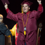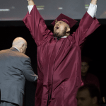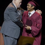 Sparks High School Principal Kevin Carroll congratulates a student at the Class of 2018 graduation ceremony last week. Carroll said the class finished near the goal of the 90 percent graduation rate that they set before the year began and was proud of their accomplishments. “This was an awesome class, the students were well behaved and took care of business,” Carroll said.