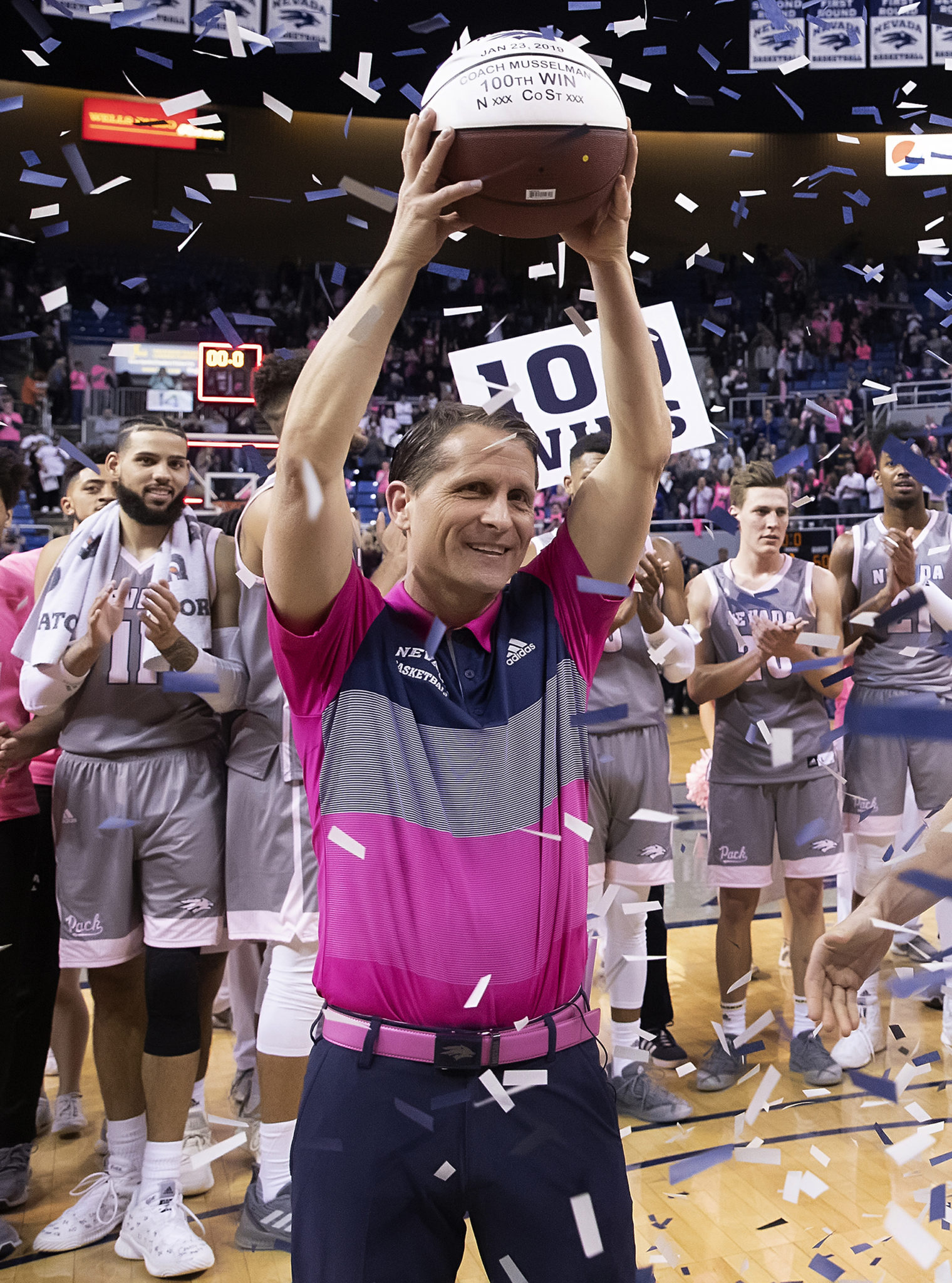 Musselman reached his 100th collegiate victory midway through his fourth season as an NCAA coach, making him the fastest in Nevada history. He is 44-16 in Mountain West games.