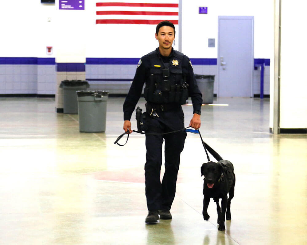 Astro, an 18-month-old Labrador retriever, arrived at the school district in early July from Ireland, just north of Belfast, where he was bred and trained to be a firearms detection dog. Astro and his handler, officer Matt Bowers, spent the first weeks of the school year visiting different schools to get Astro acclimated to his new position as well as holding demonstrations to explain what Astro’s role is to students, along with some actual searching.