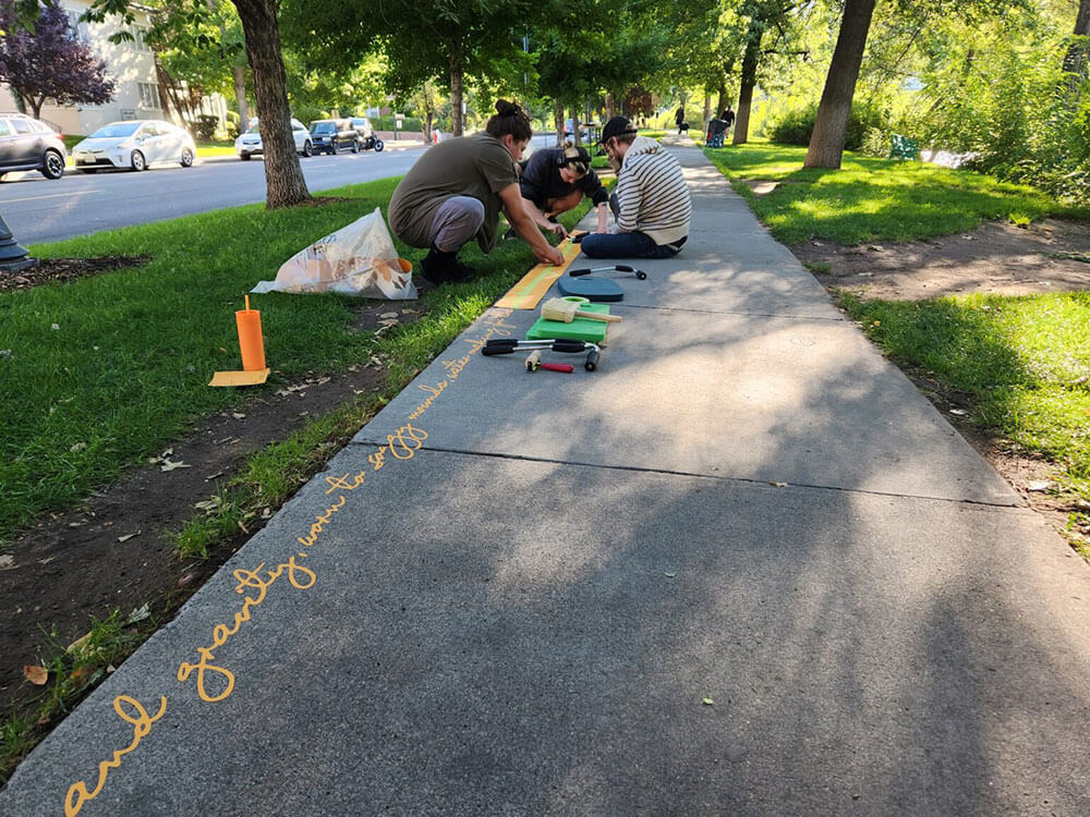 How long will the poem last on the curb? One year is the minimum, but it was not designed to last forever, reinforcing themes in the poem of change and impermanence. Gilens, however, is hoping to publish a book containing the poem and essays about environmental public art.