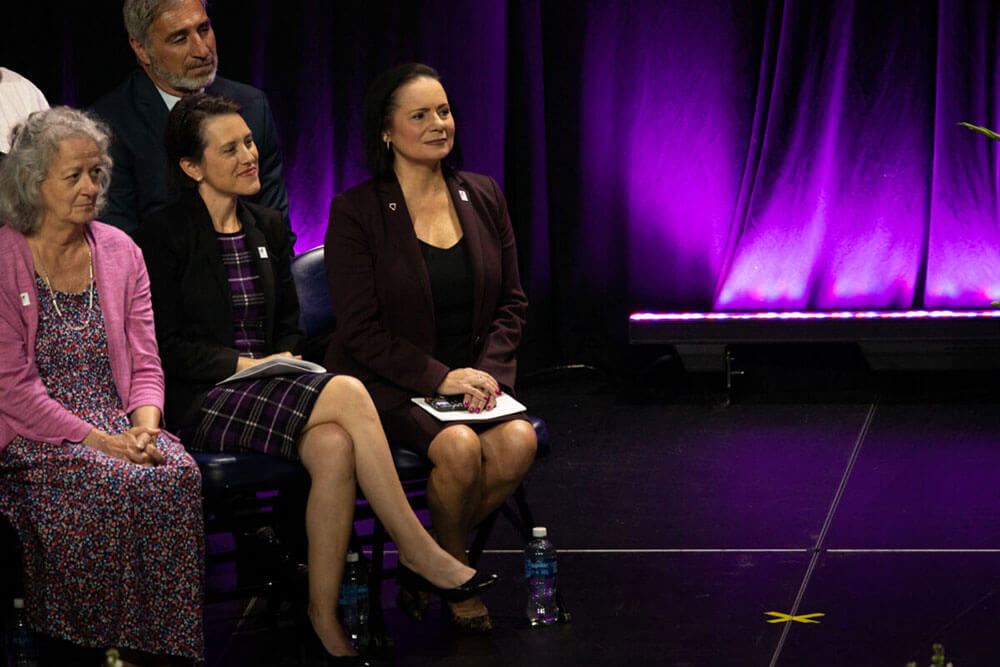 Rocio Hernandez – Washoe County School District Superintendent Susan Enfield (right) listens to students’ speeches during Spanish Springs High School’s graduation inside of the Lawlor Events Center in Reno on June 15, 2023.