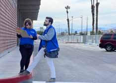 Faten Alkulifi, left, gathers signatures on March 6, 2024, for a petition by the Clark County teachers union that seeks to change the state’s anti-strike law.